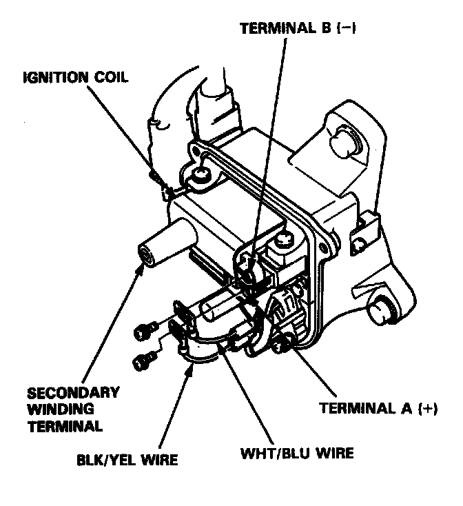 3. Using an ohmmeter, measure resistance between the terminals. Replace the coil if the resistance is not within specifications.