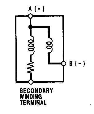 (between the A and secondary winding terminals):