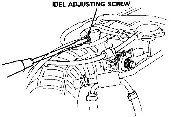 Adjust the idle speed, if necessary, by turning the idle adjusting screw.