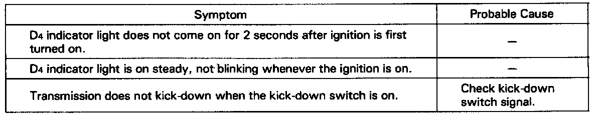If a customer describes the symptoms for codes 3, 6, 11 or 17, yet the [D4] indicator light is not blinking, it will be necessary to recreate the symptom by test driving, and then checking the [D4] indicator light with the ignition still ON.
