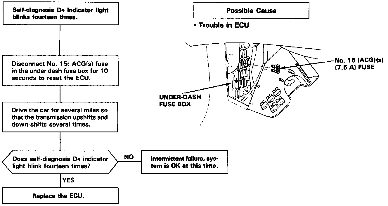 D4 indicator light blinks fourteen times: Inspection of ECU