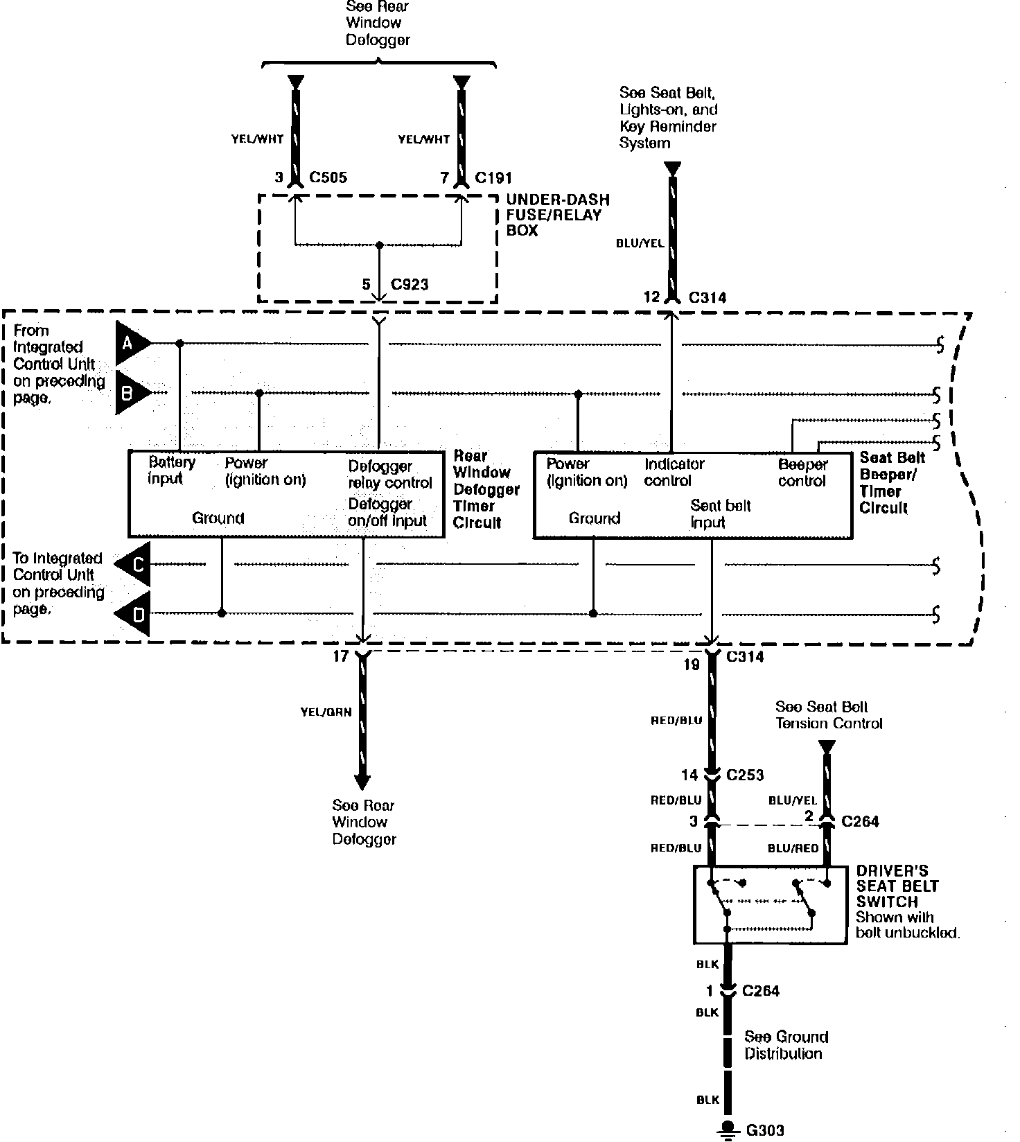 Integrated Control Unit: Timer Circuit For Rear Window Defogger And Seat Belt Beeper:
