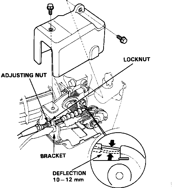 4. Check cable free play at the throttle linkage. The cable deflection should be: