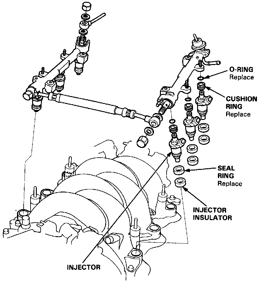 CAUTION: To prevent damage to the 0-ring, install the injectors in the fuel pipe first, then install them in the intake manifold.