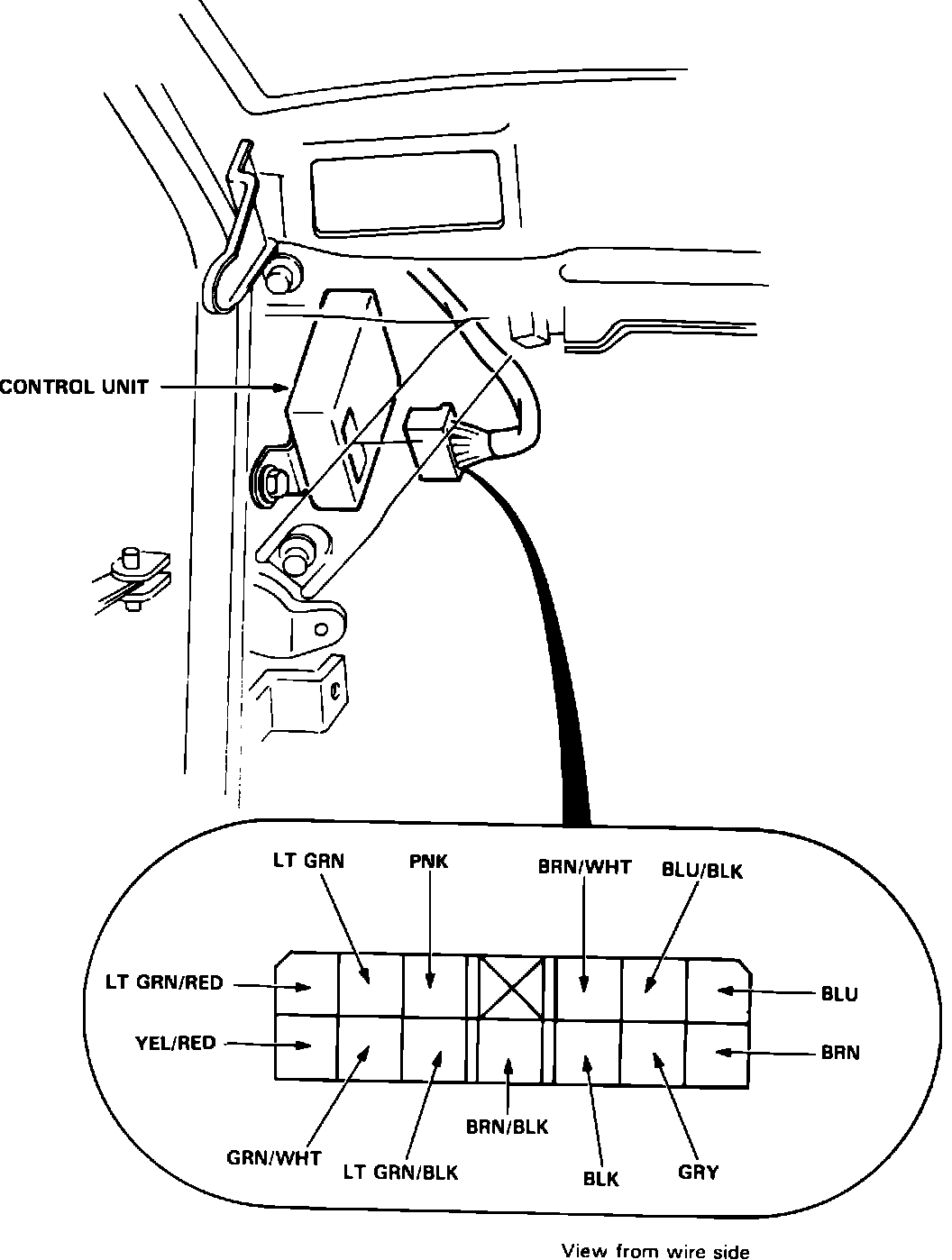 3. Remove dashboard lower panel, then disconnect control unit connector.