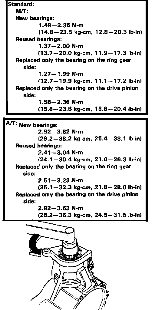 Manual/Automatic Transmission Differential Drive Pinion Preload: