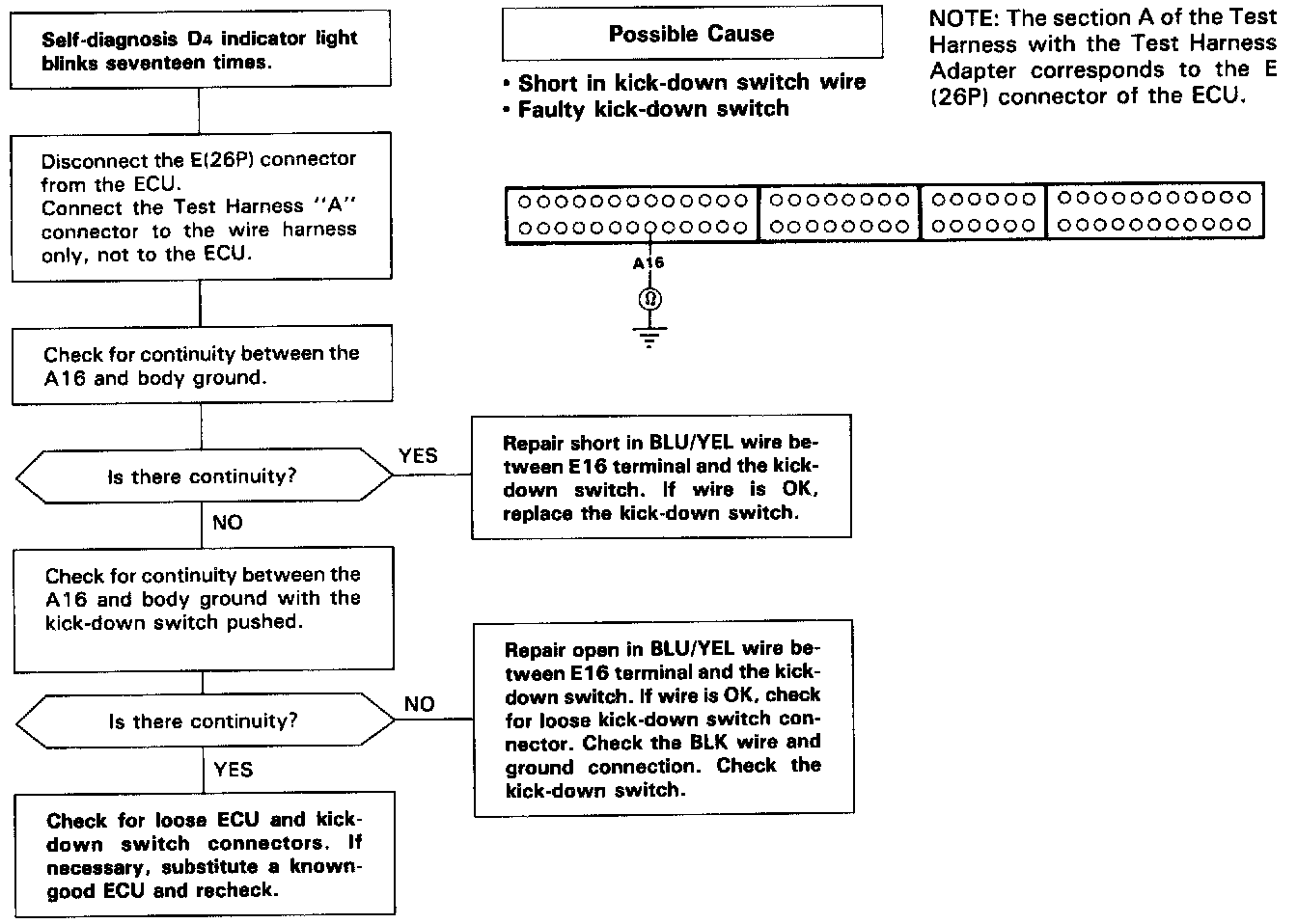 Transmission does not kick down when the Kick-down Switch is on. / Inspection of kick down switch signal.