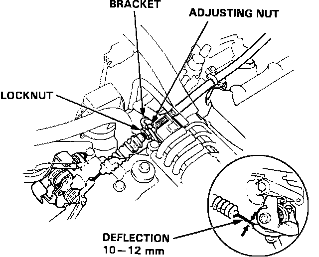 3. Check cable free play at the throttle linkage. The cable deflection should be: