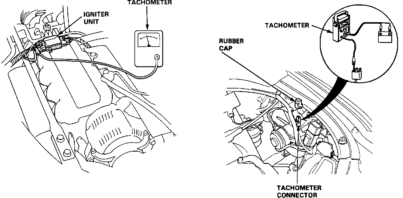 7. Remove the rubber cap from the tachometer connector and connect a tachometer.