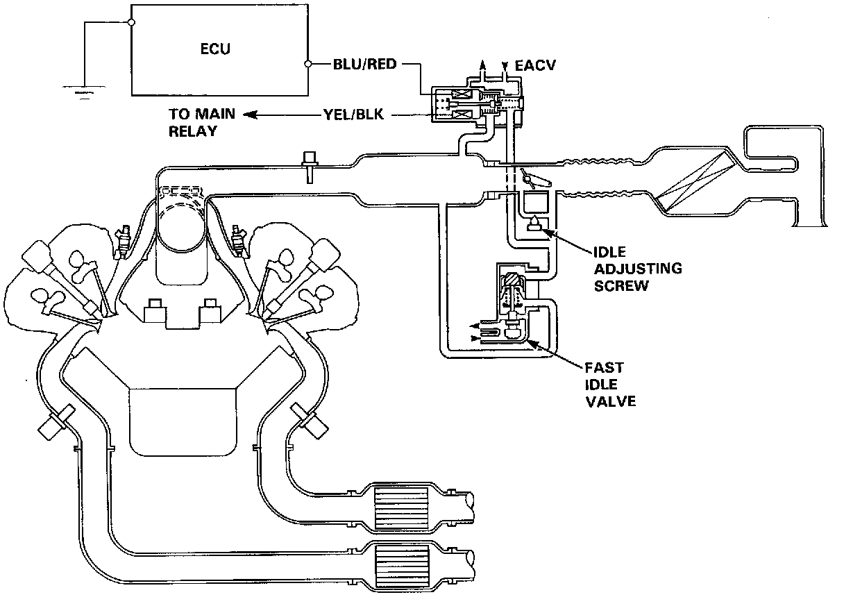 The idle speed of the engine is controlled by the Electronic Air Control Valve (EACV).