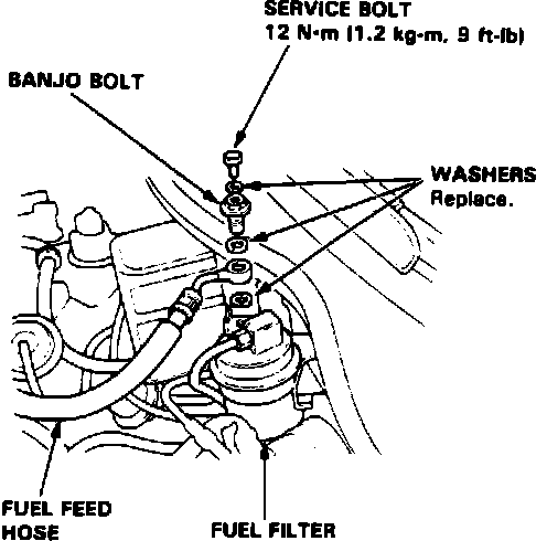 Relieve fuel system pressure by loosening the service bolt on top of fuel filter one complete revolution.