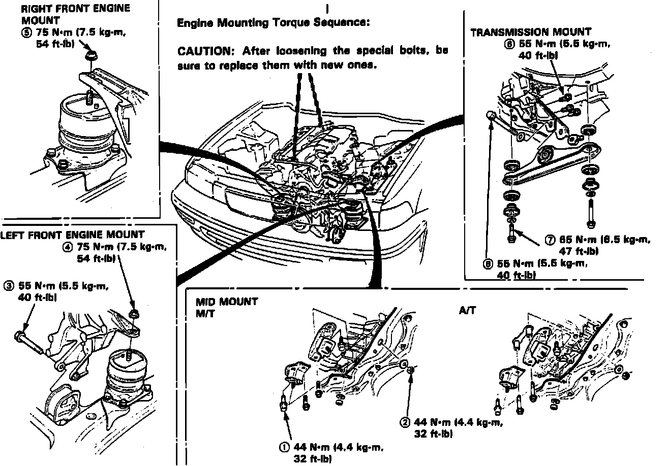 Fig. 13 Engine & Transaxle Mount Tightening Sequence: