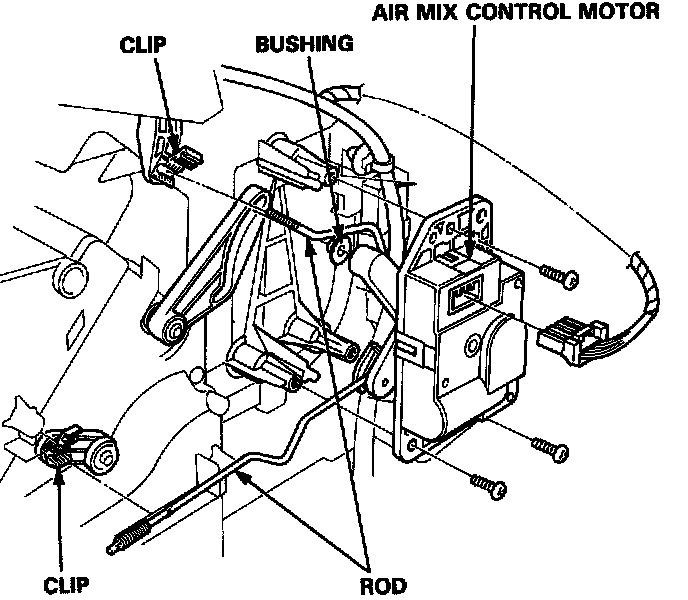 3. Unhook the clips from the air mix control motor rod, then remove its mounting screws and air mix control motor.