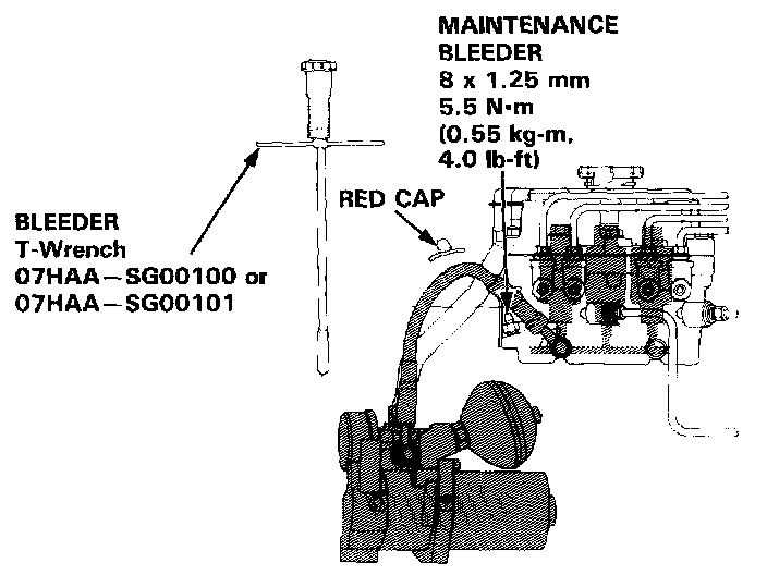 2. Bleed high-pressure fluid from the maintenance bleeder with the special tool.