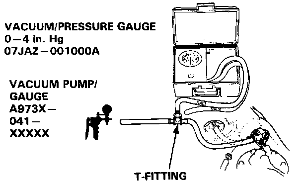 2. Remove vapor line from the fuel tank and connect to T-fitting from vacuum gauge and vacuum pump as shown.
