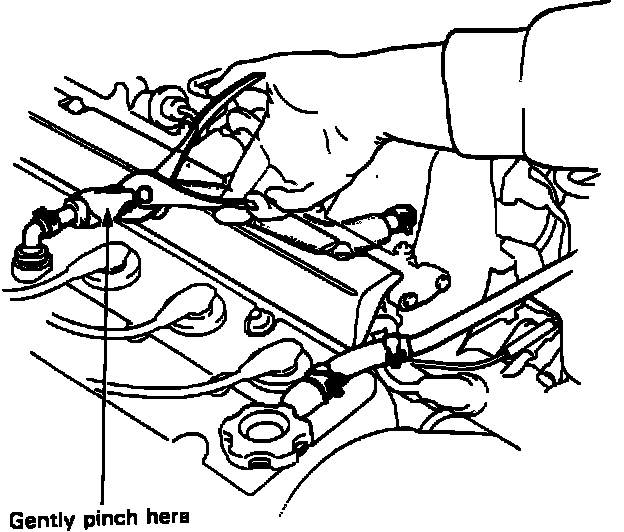 2. With the engine at idle, make sure there is a clicking sound from the PCV valve when the hose between the PCV valve and the intake manifold is lightly pinched with your fingers or pliers.