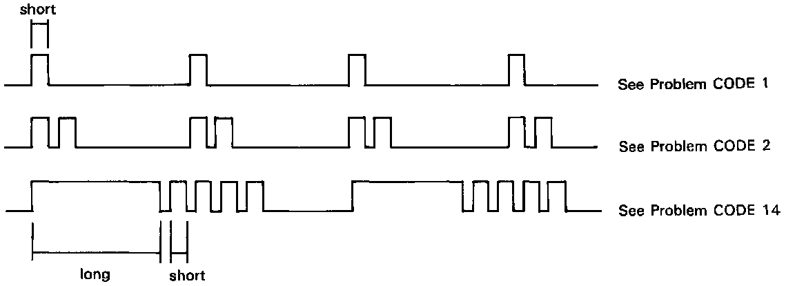 Problem codes 1 through 9 are indicated by individual short blinks, Problem codes 10 through 16 are indicated by a series of long and short blinks. One long blink equals 10 short blinks. Add the long and short blinks together to determine the problem code. After determining the problem code, refer to the electrical system Symptom-to-Component Chart. DTC List - Transmission Control
