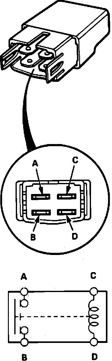 2. Continuity should exist between terminals A and B when battery voltage is applied to terminals C and D.