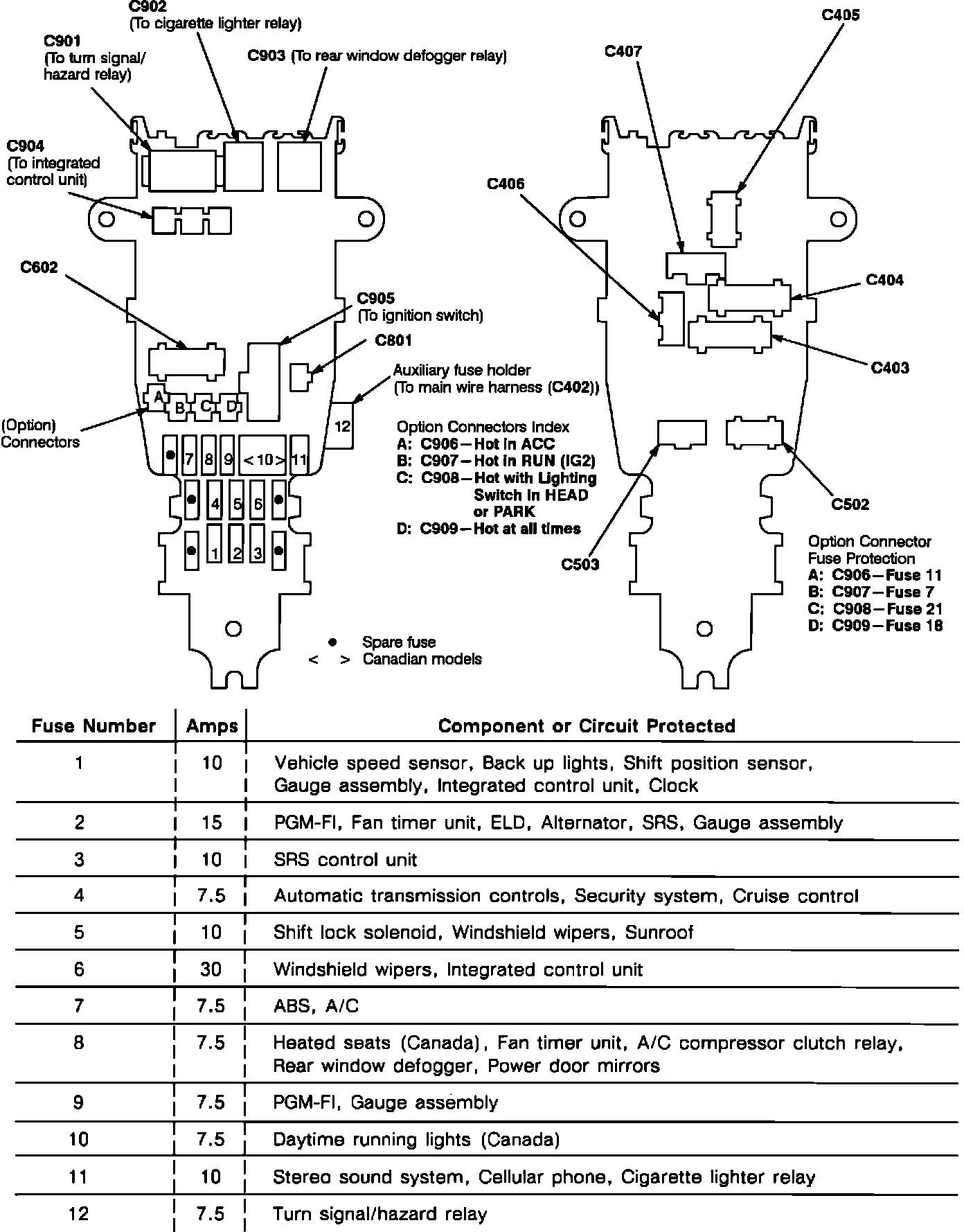 Fuse Panel Details: Under-dash Fuse/Relay Box: