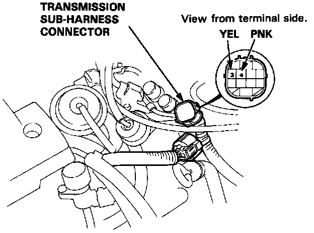 1. Disconnect the transmission sub-harness connector.