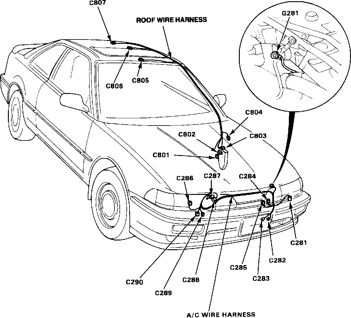 Connector Location And Wire Harness Routing: A/C And Roof: