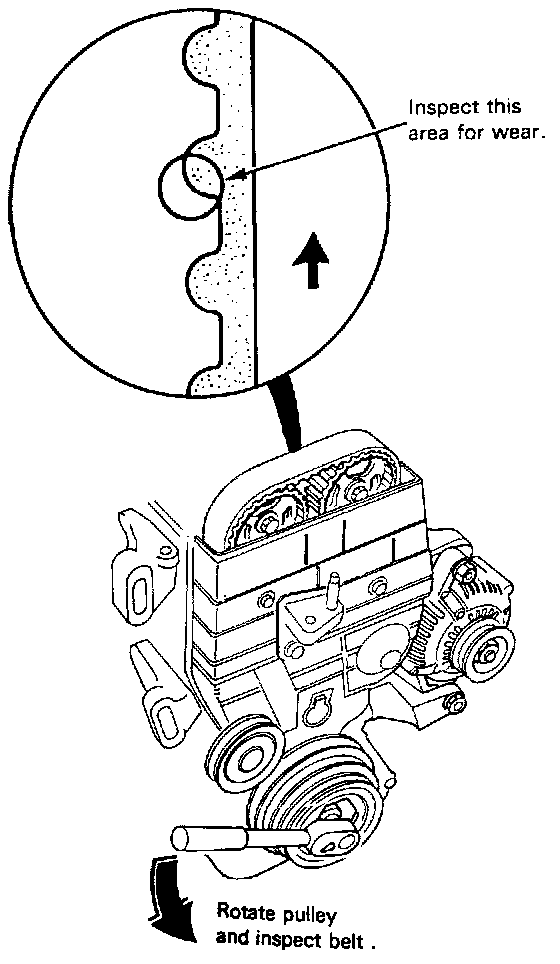 2. Inspect the timing belt for cracks and engine coolant or oil soaking.
