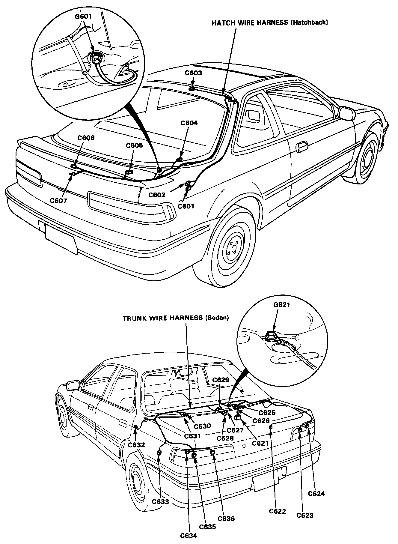 Hatch Wire Harness (Hatchback), Trunk Wire Harness (Sedan):