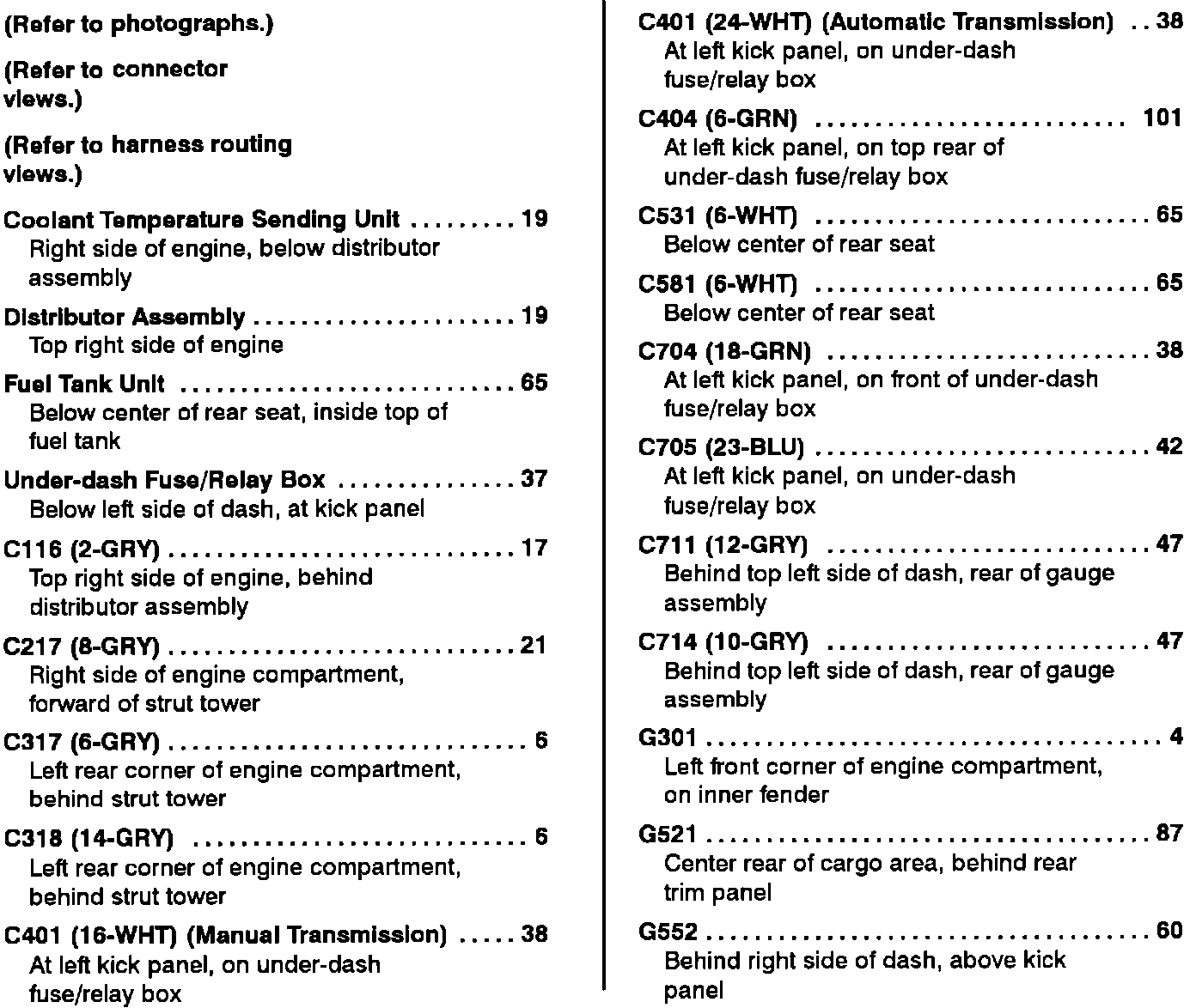 Component Location Index