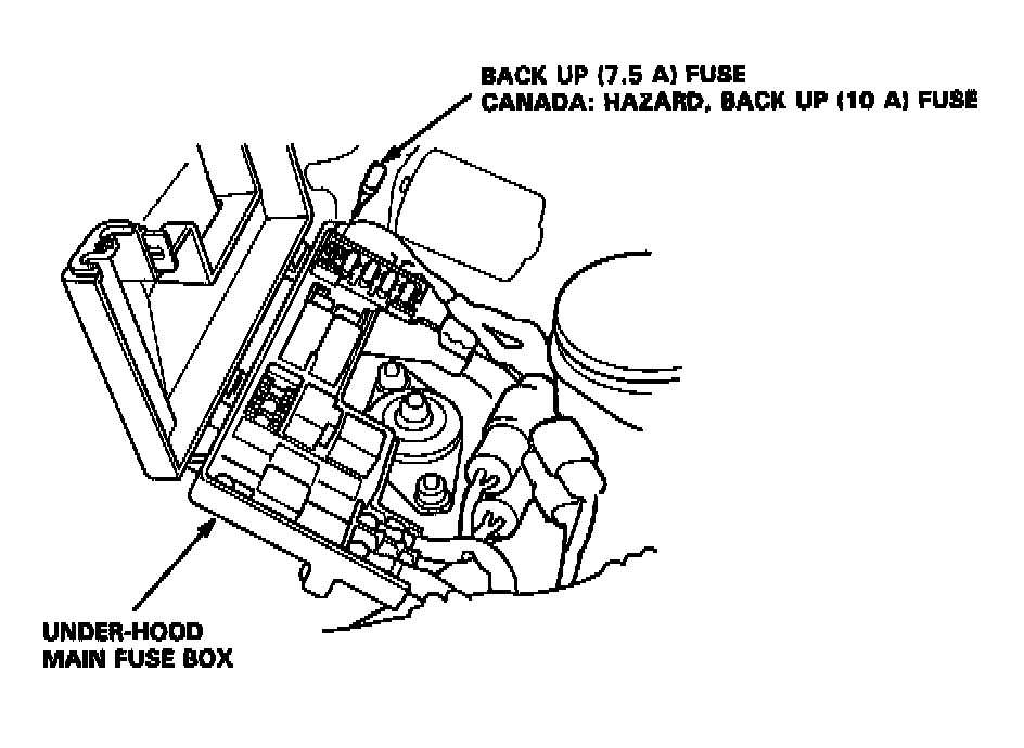 2. Remove the BACK UP (7.5 Al fuse from the under-hood fuse/relay box for 10 seconds to reset the ECM.
