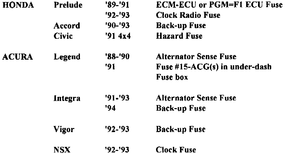 Honda/Acura systems use different fuses for different models to keep the memory alive. Remove the appropriate fuse for at least a minute. Or, pull the negative battery cable for a minute and be done with it.