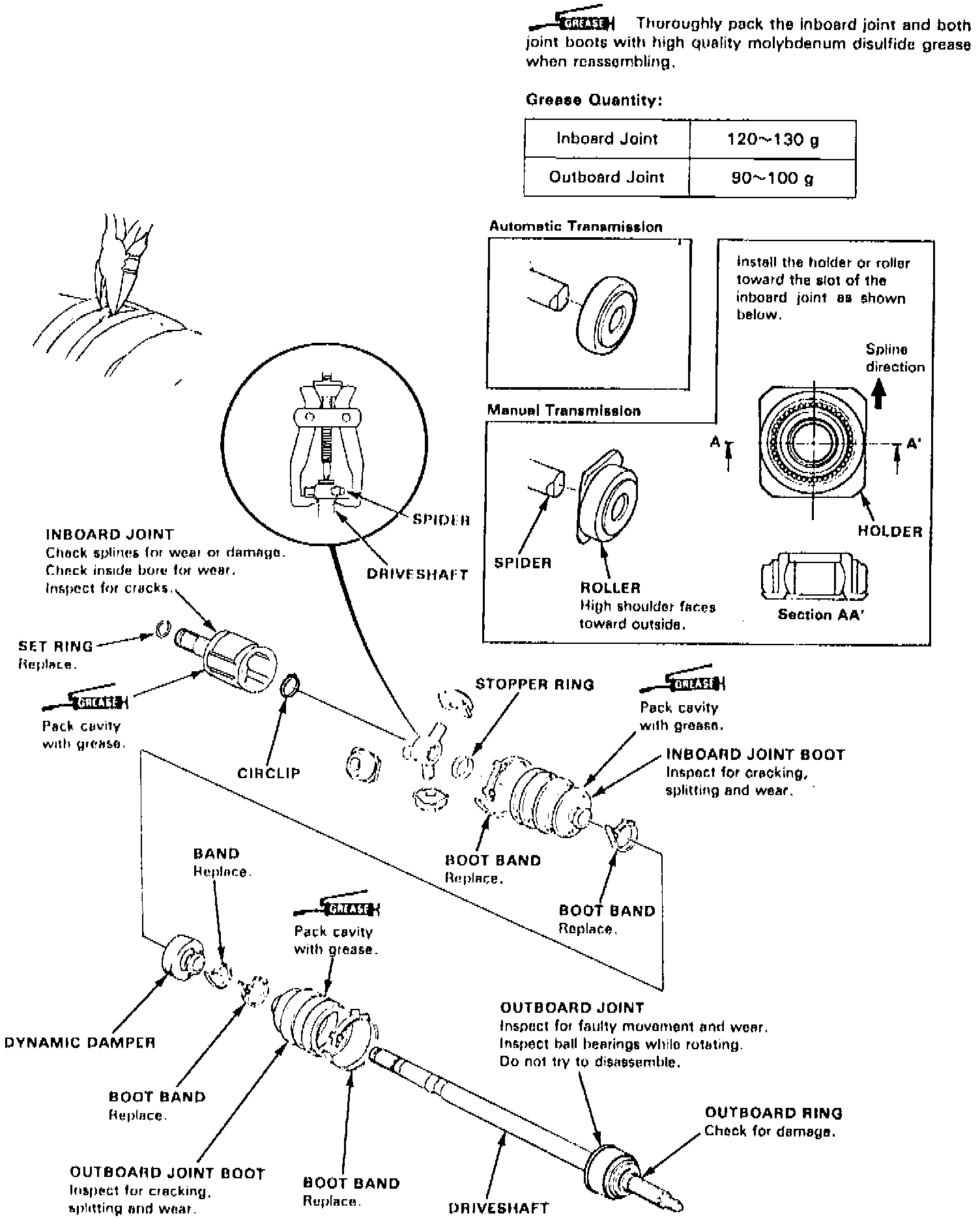 a. Pack bearings, joint boot cavity and both CV joints with suitable grease prior to installation.