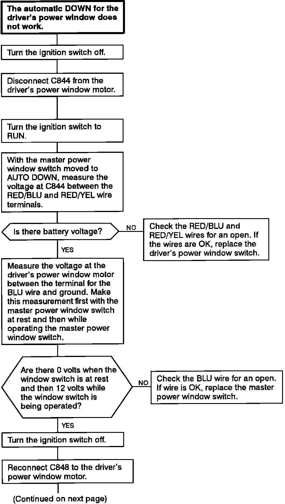 Power Windows: Troubleshooting (Troubletree C, Continued):