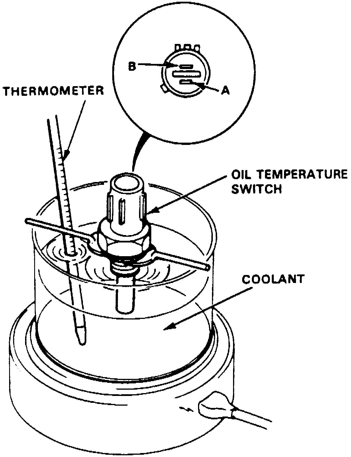 2. Suspend oil temperature switch in a container of coolant, Fig. 20.