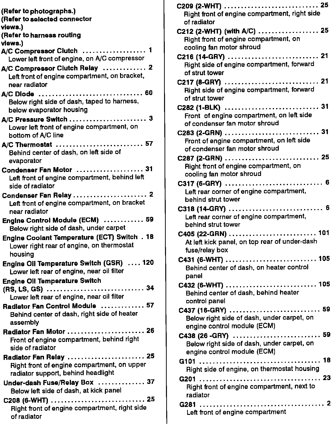 Air Conditioning: Fans And Compressor Control (Canada) Component Location Index: