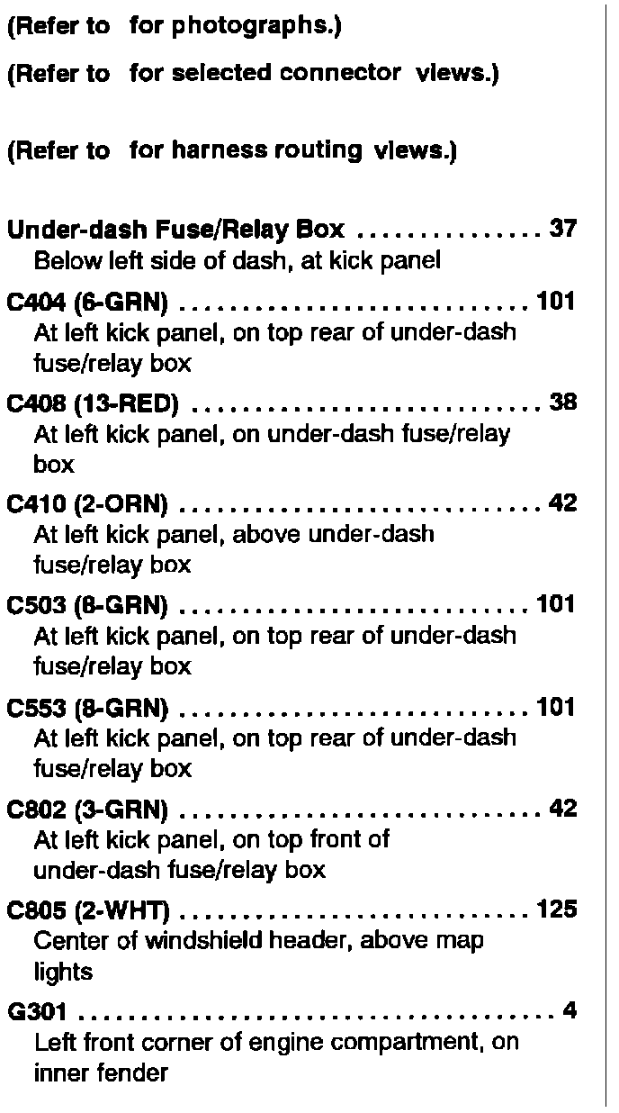 Component Location Index