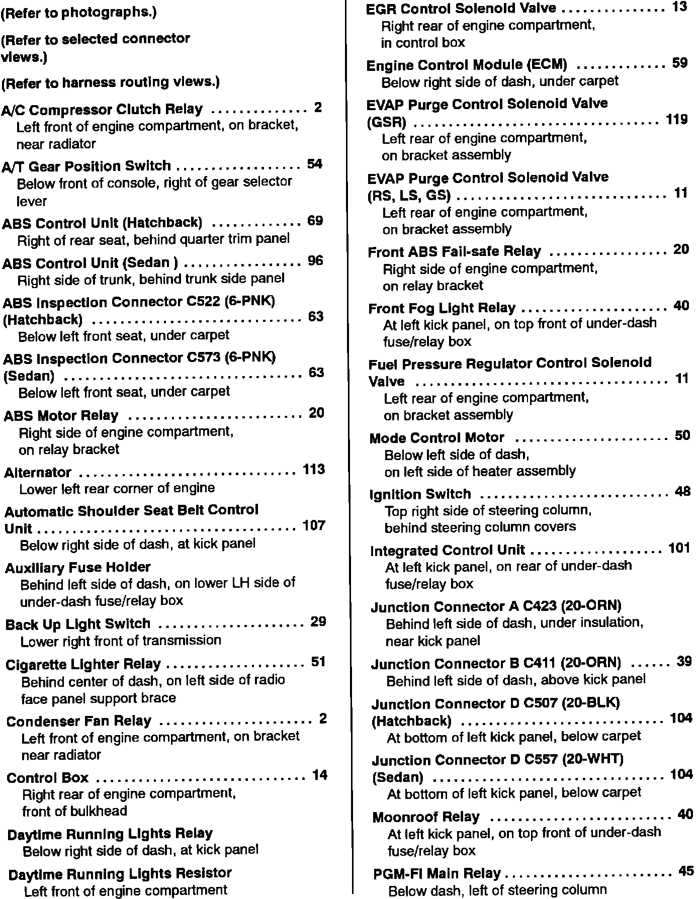 Component Location Index