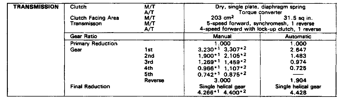 Manual/Automatic Transmission Gear Ratios: