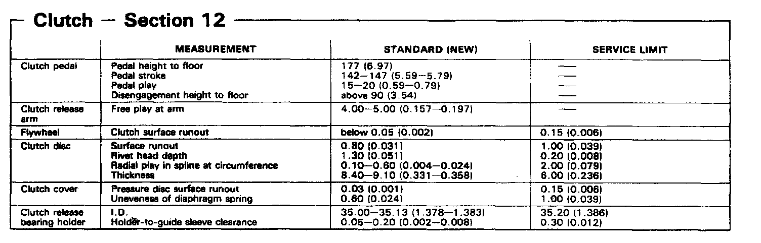 YS1 5-spd M/T, Clutch Measurement: