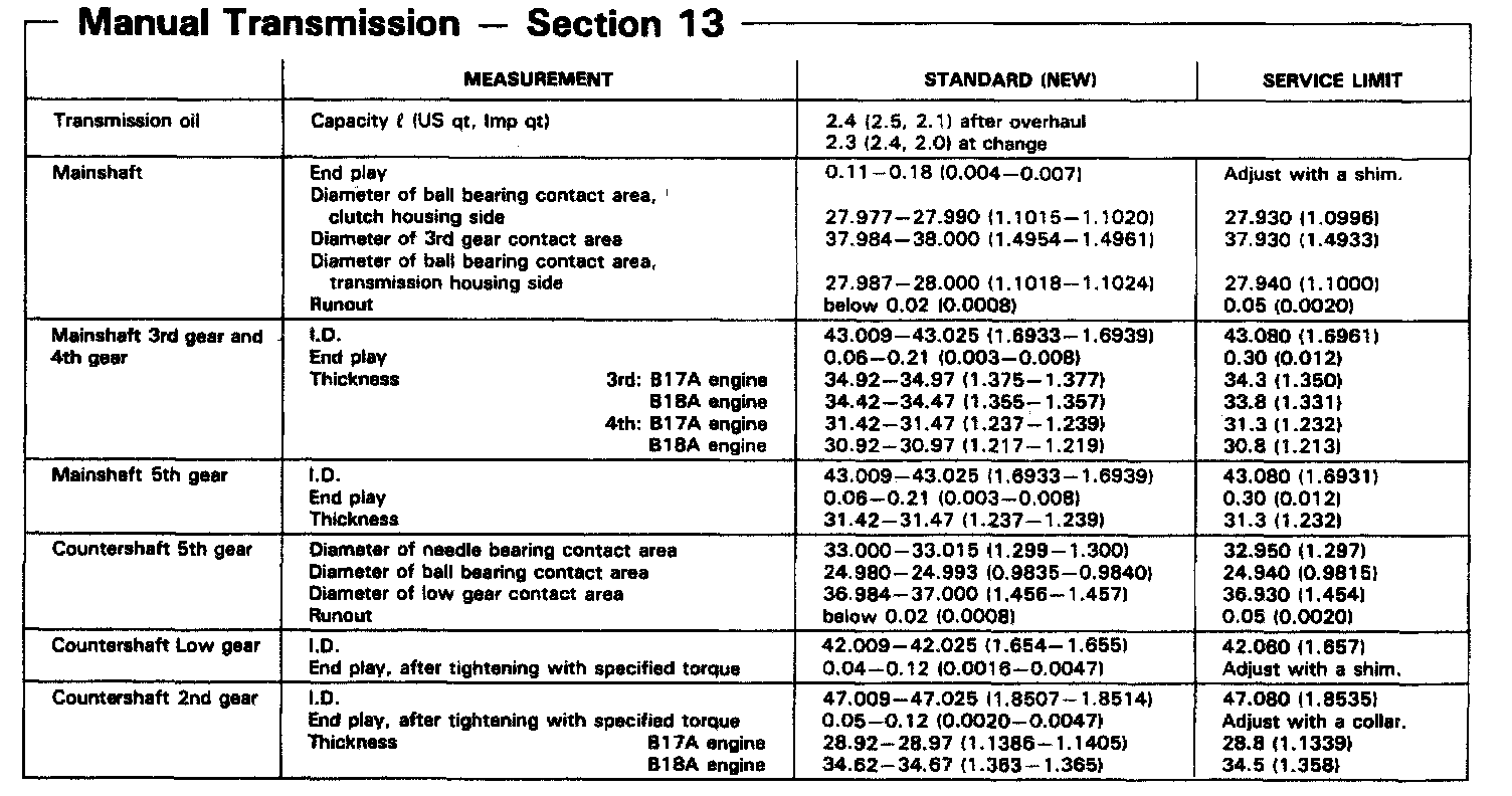 YS1 5-spd M/T, Mainshaft/Countershaft Measurements: