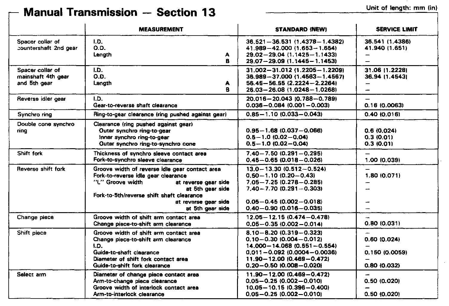 YS1 5-spd M/T, Gears, Synchro Rings & Shift Forks Clearances: