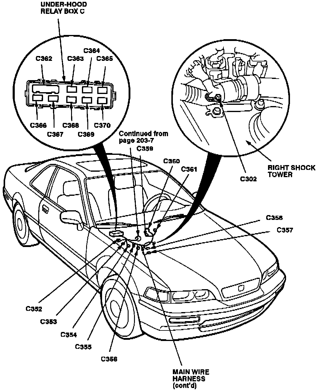 Connector Locations And Connector Wire Harness Routing: Main Wire Harness (Under-hood Branch):