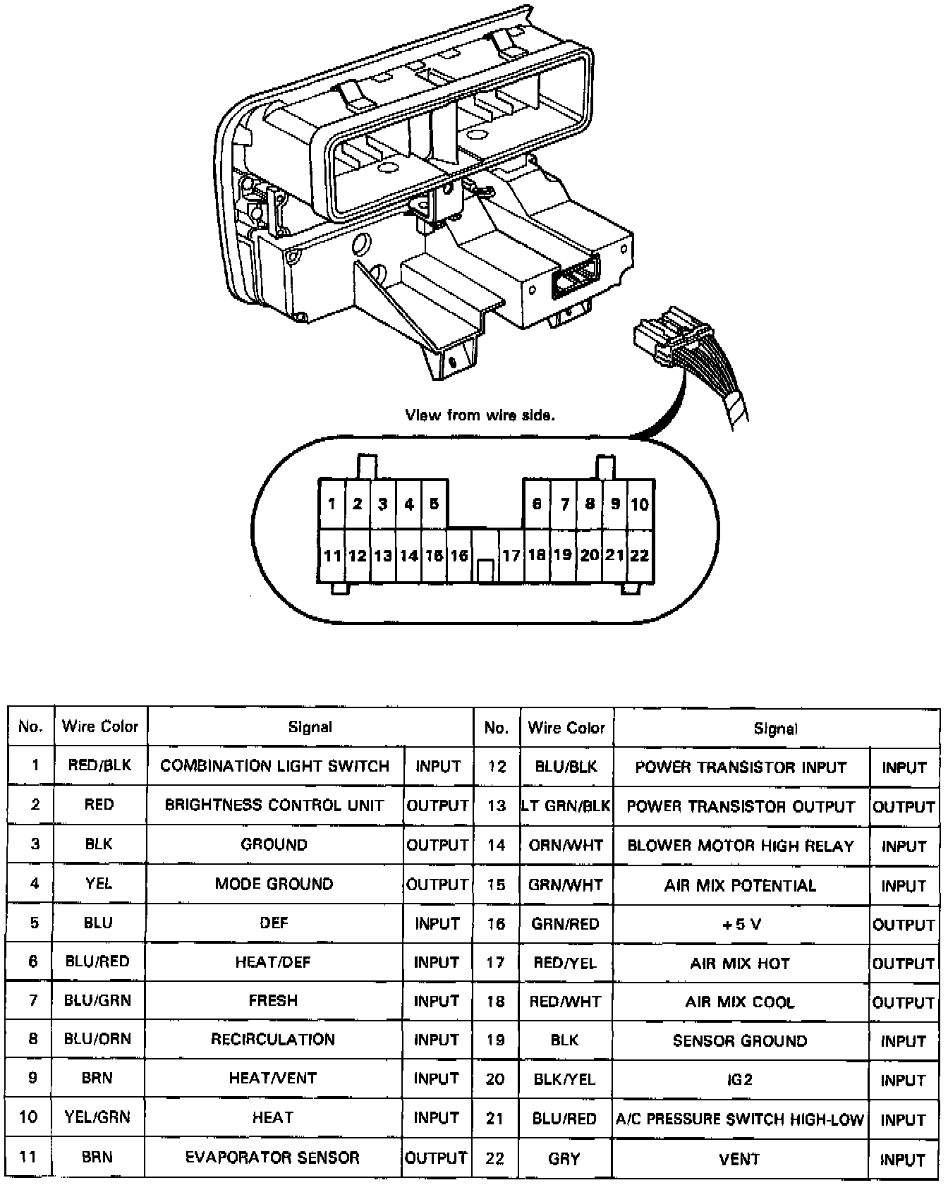 Input/Output Signals - Manual Heating and Air Conditioning - Manual A/C