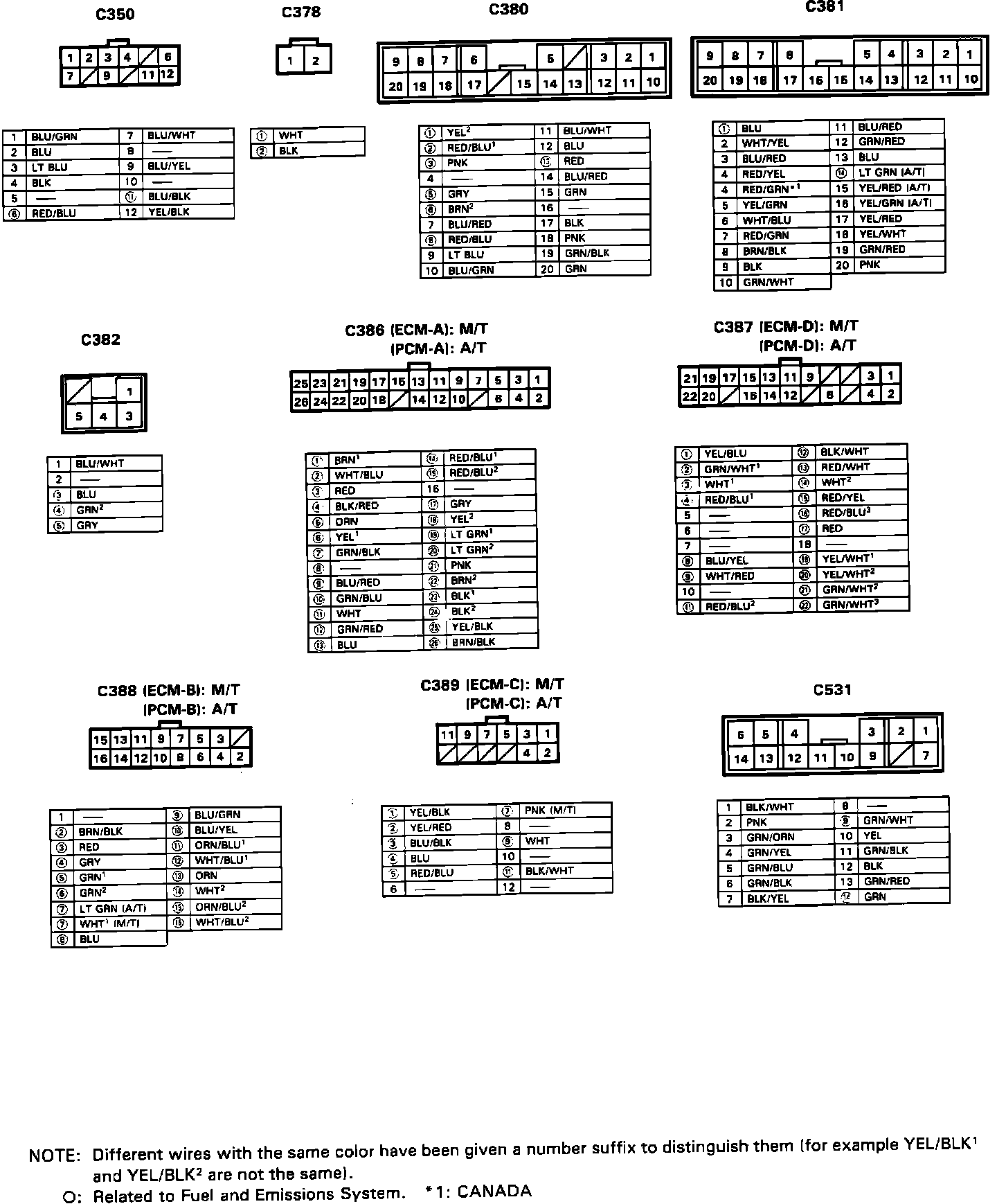 Connector Configuration/wire Color:
