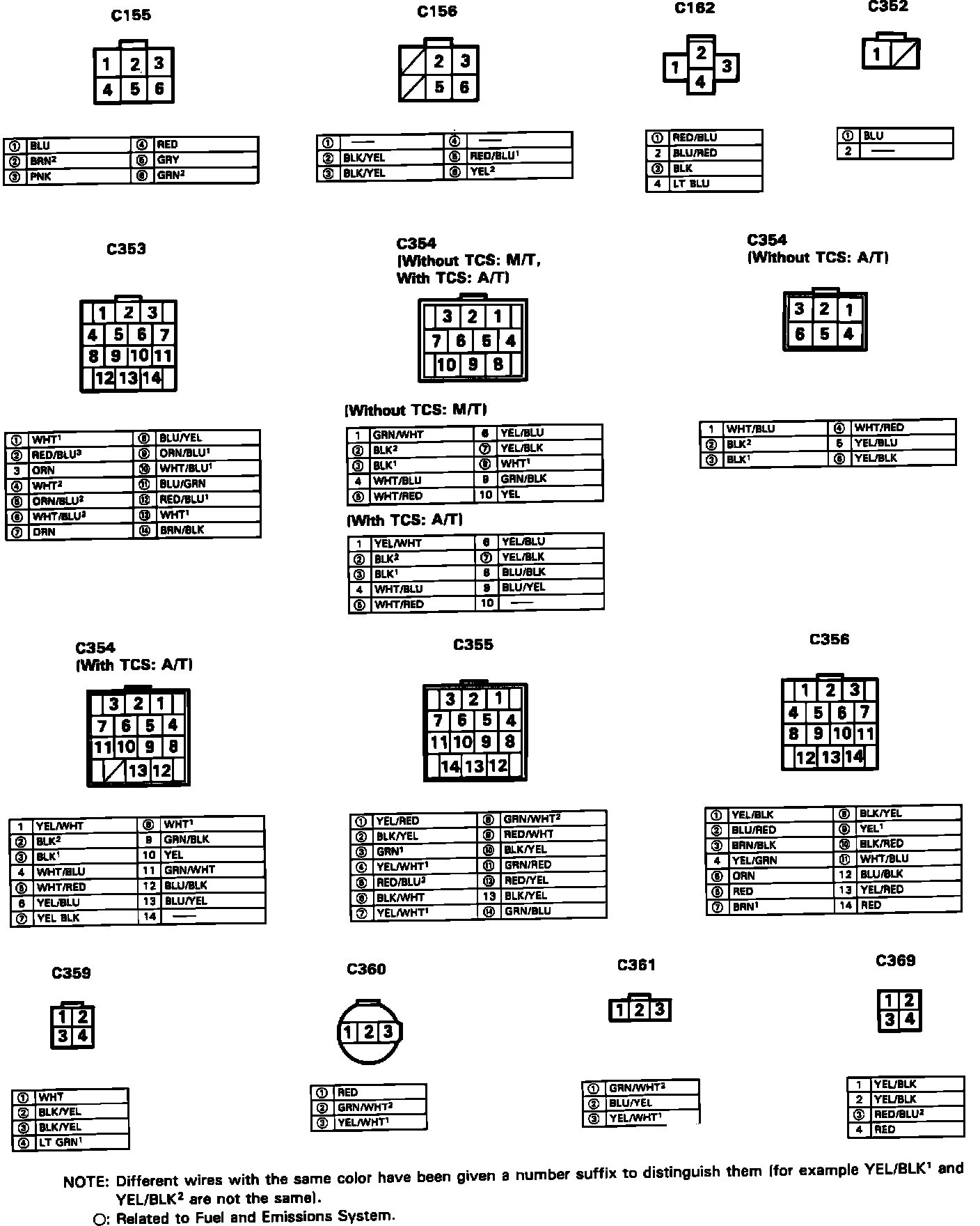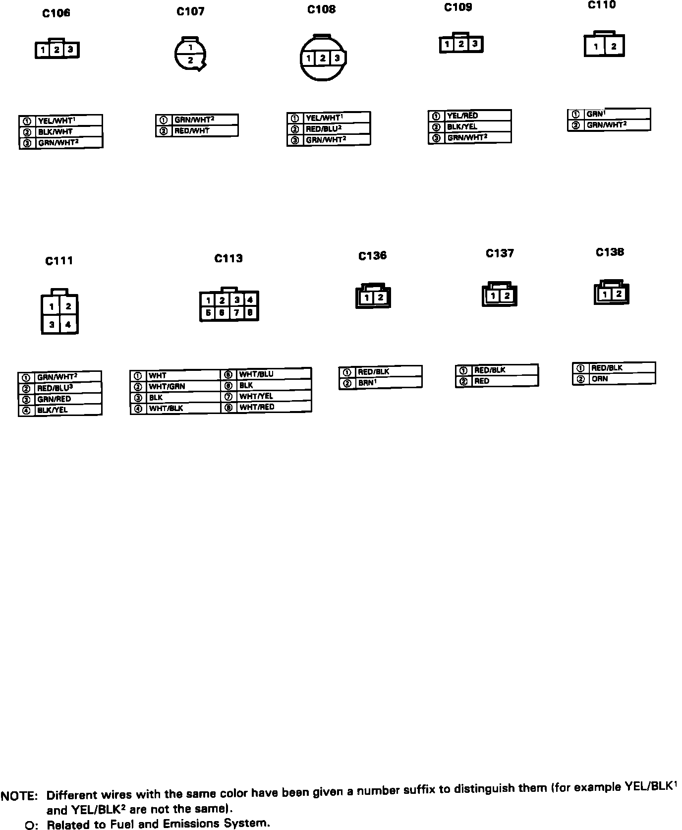 Wiring Connector Configuration/Wire Color:
