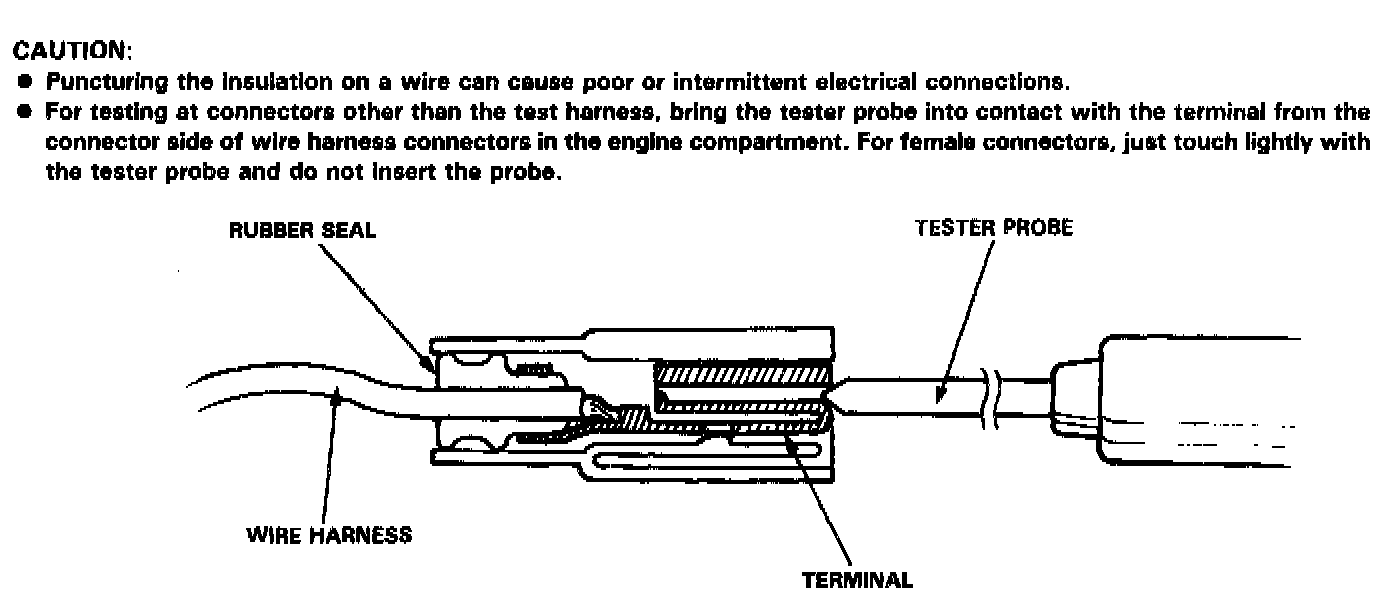 If the electrical readings are not as specified when using the test harness, check the test harness connections before proceeding.