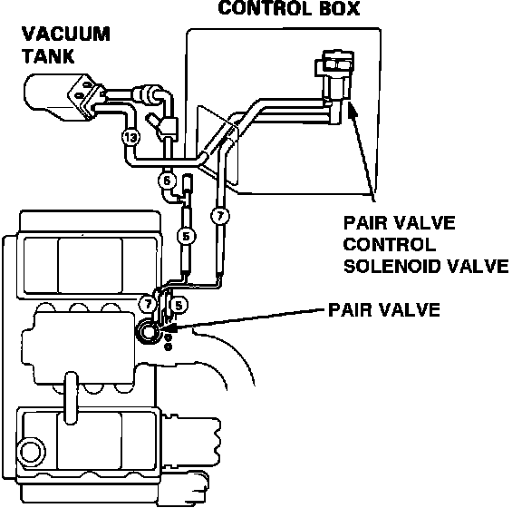 b. If there is no vacuum, go to air suction control solenoid valve test 1. SEE "COMPUTERS AND CONTROL SYSTEMS"