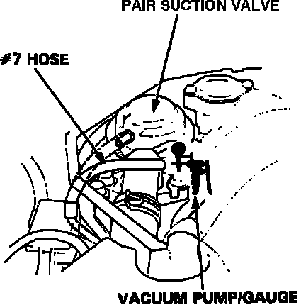 6. If bubbling sound is not heard, disconnect #7 vacuum hose from the top of the air suction valve, attach a vacuum gauge, and check for vacuum within 10 seconds after restart.