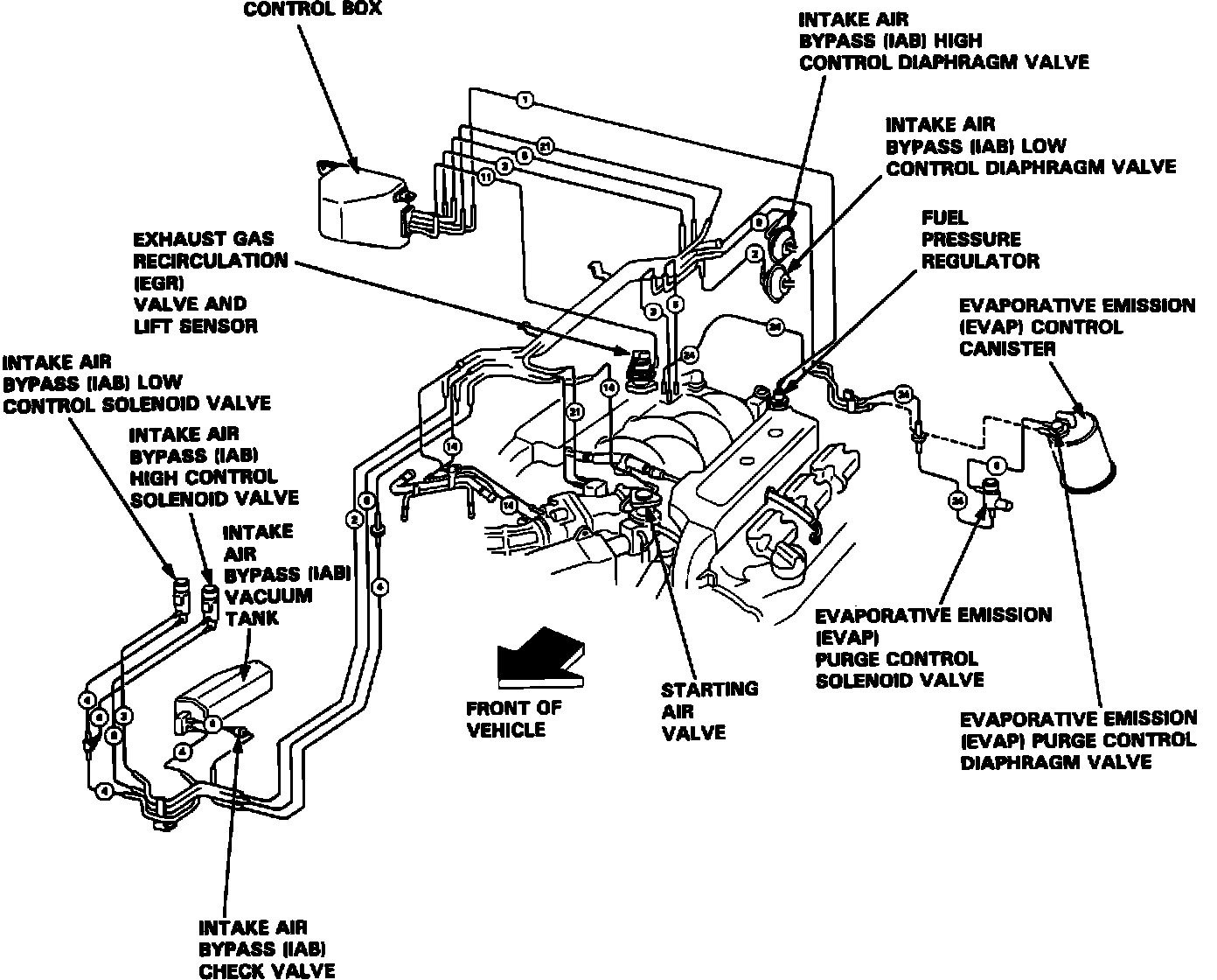 Engine Compartment Vacuum Hose Connections: