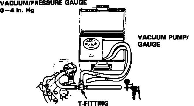 2. Remove the vapor line from the fuel tank and connect it to a T-fitting from a vacuum gauge and pump as shown.