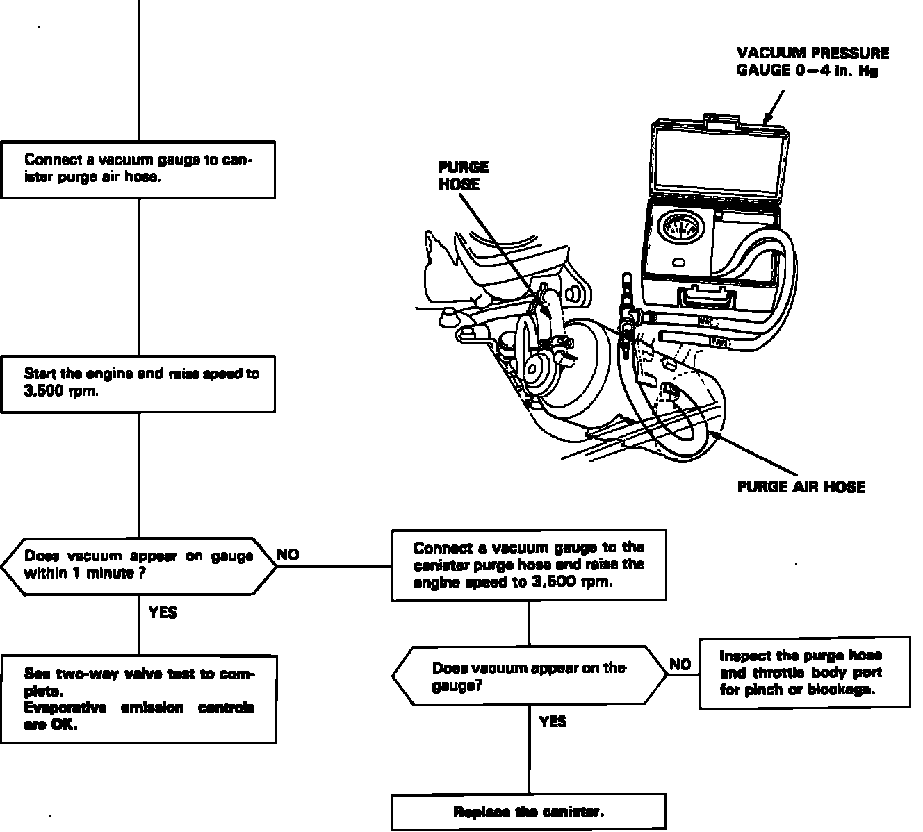 b. If vacuum stabilizes (valve opens) below 5 mmHg (0.2 in.Hg) or above 15 mmHg (0.6 in.Hg), install a new valve and retest.